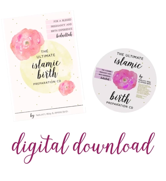 تم إنشاء مجموعة التحضير الإسلامي للولادة بواسطة ناتشرز واي وأماني للولادة، وتشمل 15 مسارًا صوتيًا (mp3) وكتيبًا من 32 صفحة (لقراءة عبر الإنترنت) يعترف بالولادة كعملية طبيعية وعبادة لله (سبحانه وتعالى). يبرز الكتيب أهمية الاسترخاء وقوة الدعاء، ويحتوي أيضًا على معلومات خاصة للزوج ونصائح تمكينية للأم التي قد تخضع لعملية ولادة طبيعية بعد القيصرية (VBAC). المسارات الصوتية تكون في الغالب باللغة الإنجليزية مع أدعية وأذكار (صلاة ودعاء) باللغة العربية لتتبعها.