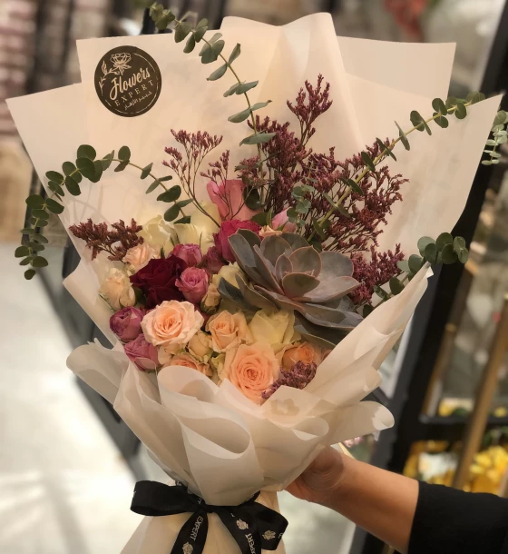 باقة زهور طبيعية من الأزهار الرقيقة تنسيق بوكيه 37
