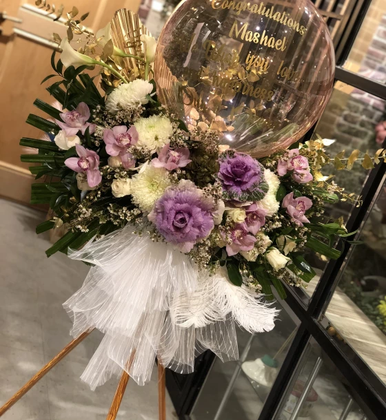 باقة ورد طبيعي كبيرة مع بالون يحمل كتابة حسب الطلب، مثالية لجميع المناسبات. عند الطلب عبر الموقع الإلكتروني، نضمن توصيل الباقة بسرعة وفي الوقت الذي تختارينه، مع إمكانية تخصيصها بما يتناسب مع ذوقك الخاص.