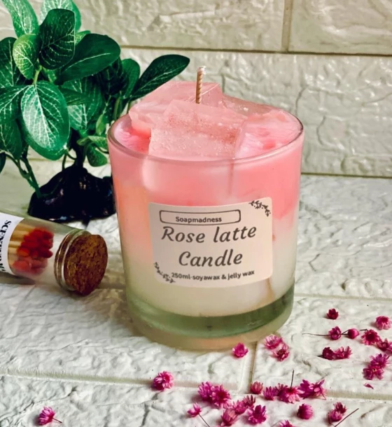 شمعة روز لاتيه – مزيج عطري من القهوة والورد في تصميم أنيق
