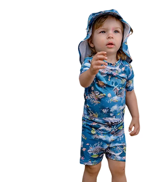 لبس سباحة تريتون جاميكس للأولاد - أزرق منقوش بثلاث قطع