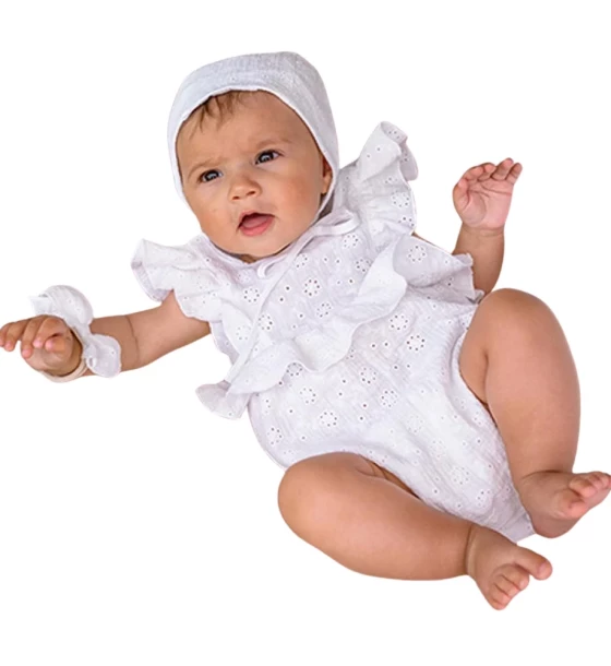 جاميكس فستان رومبر ألسيجا للبنات - أبيض سادة من القطن العضوي مع قبعة قلنسوة
