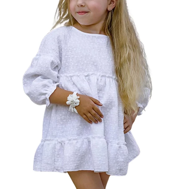 فستان سكارليت أبيض للبنات مع قبعة من جاميكس - فساتين أطفال قطن عضوي