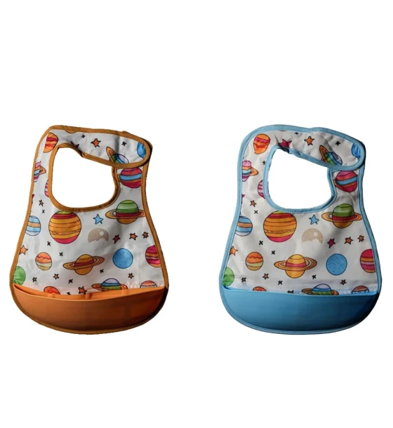 مريلة ليتل موون: راحة و نظافة لرضيعك، بجيوب سيليكون عملية (قطعتين)-برتقالي وازرق